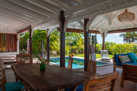 Une charmante villa construite dans l’esprit de l’ile, confortable, accueillante et résolument tournée vers le lagon et l’ile de la Dominique.